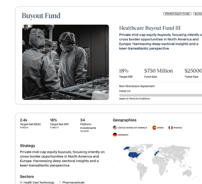 Our mission is to help investors access and evaluate strategies with greater transparency and control. From private equity and credit to infrastructure, private markets demand a thoughtful, informed approach. Our platform provides professional investors with structured access to opportunities once available exclusively to institutional allocators.