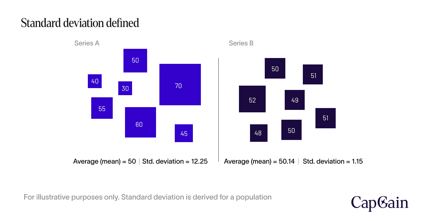 A higher standard deviation signifies higher volatility and, thus, greater uncertainty and risk. In contrast, a lower standard deviation indicates more stable and predictable performance.